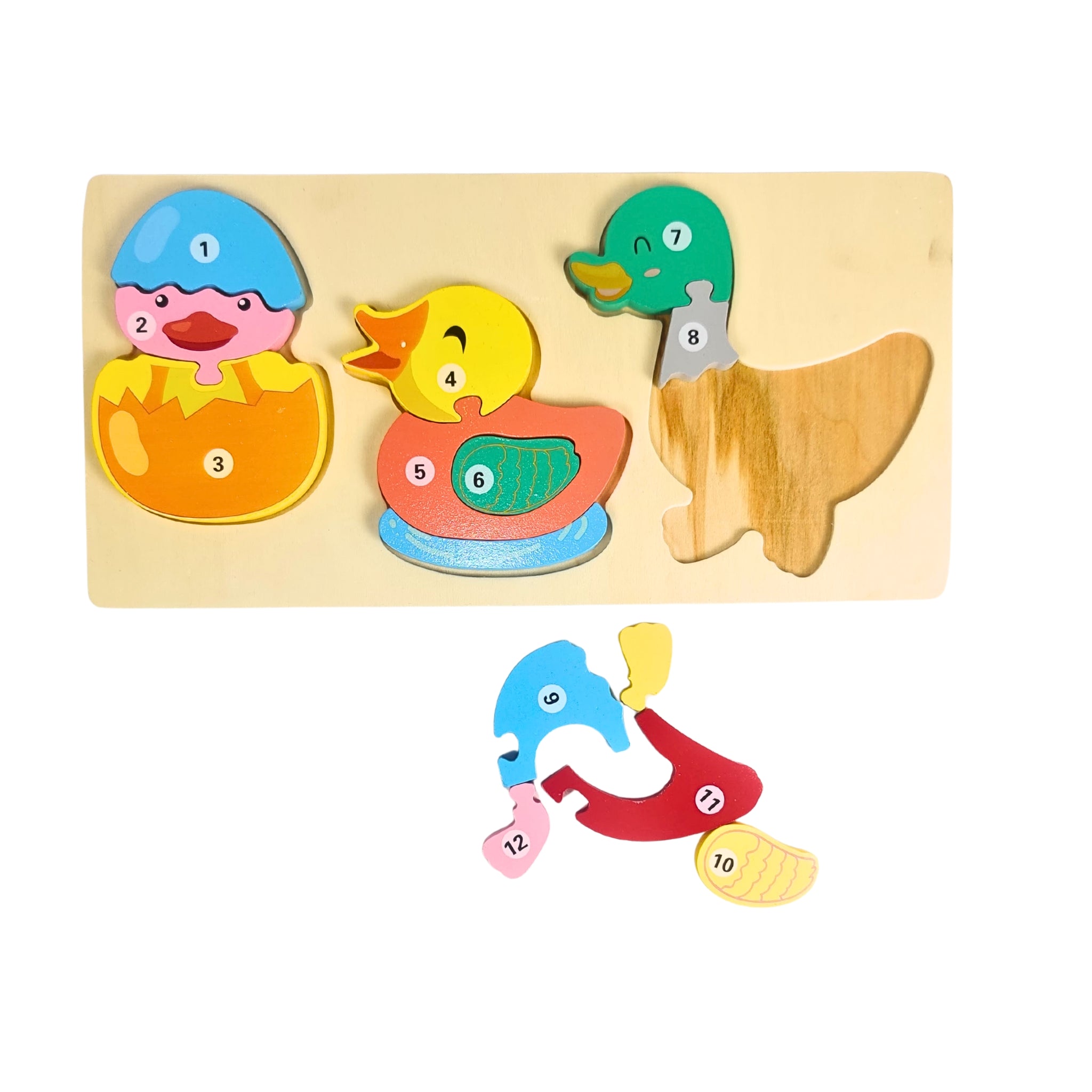 Duck life cycle wooden puzzle – Helps children learn about the transformation from egg to adult duck